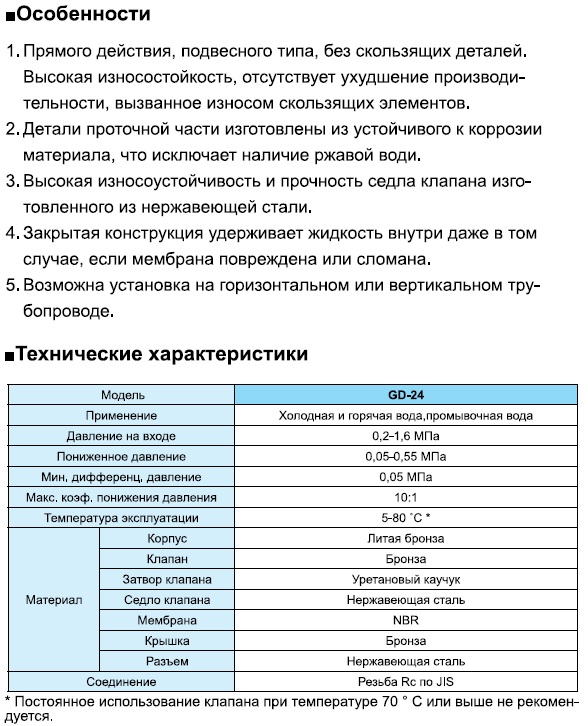 Редукционный клапан прямого типа действия